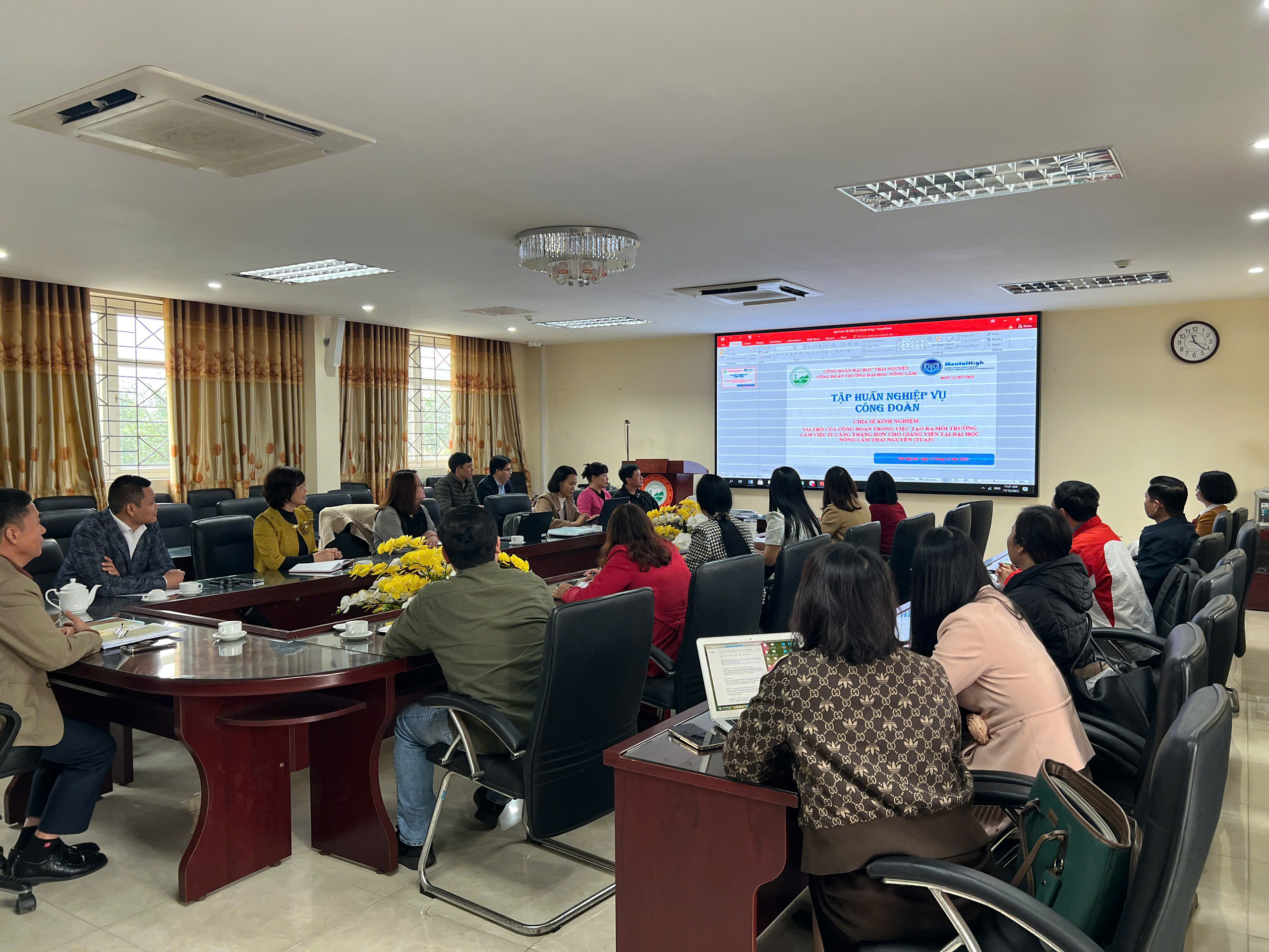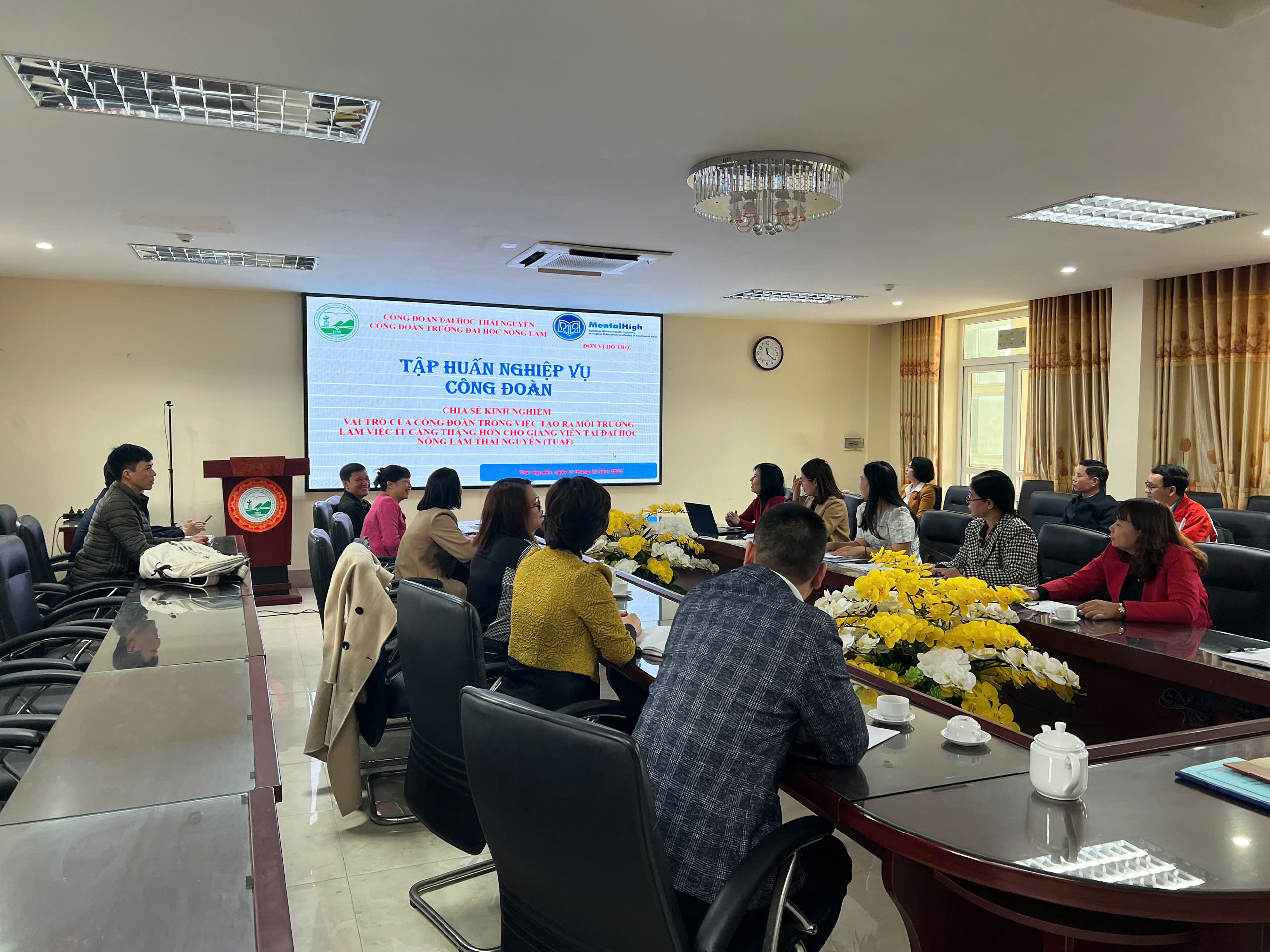 With the support of the MentalHigh project (Enhancing mental health capacity in higher education institutions in Southeast Asia), the University Union of Thai Nguyen University of Agriculture and Forestry (TUAF) successfully organized a trade union professional training session focusing on integrating skills to support mental health for lecturers and union members. The training focused on practical content such as identifying signs of work stress, basic psychological support techniques, organizing stress-reducing welfare activities, building a healthy work environment, and sharing experiences in caring for mental well-being. This helped trade union officials improve their capacity to represent and protect the rights of union members, contributing to reducing teaching and research pressure, strengthening community cohesion, and improving work efficiency in the context of international integration at TUAF. During the training, trade union officials from various units shared their experiences in organizing activities to support lecturers and employees in reducing work stress.
